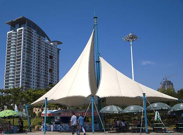 優(yōu)秀的膜結(jié)構(gòu)設(shè)計(jì)是結(jié)構(gòu)與外形的有機(jī)融合,使其顯的出類拔萃,同時(shí)與自然環(huán)境、歷史及現(xiàn)代的城市景觀有機(jī)結(jié)合。輕型結(jié)構(gòu)可以看成是大型的雕塑作品,可為其周邊空間增添活力,成為周圍環(huán)境的補(bǔ)充和焦點(diǎn)。